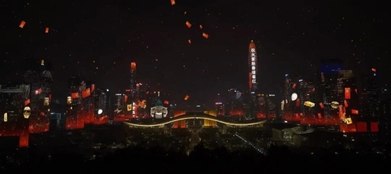 白天逛完了集,晚上还能看福田区市民广场举办的三角洲灯光秀。灯光秀穿插了一系列的游戏文化符号,搭配主题音乐和游戏语音,用吉利的“大红”战利品和新年祝福收尾,令人印象深刻。